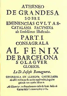 1. Feliu, Francesc. “Una lliçó d’història de la llengua literaria. El pròleg a l’Atheneo de Grandesa de Joseph Romaguera.” Estudi General 20 (2001), p.445.