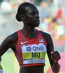 Athing Mu (Trenton, 8 de junio de 2002) es una deportista estadounidense que compite en atletismo, especialista en las carreras de mediofondo. Su familia es de origen sudanés.[1]