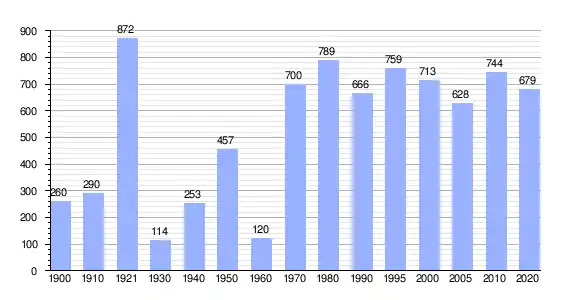 Gráfica de evolución demográfica de Atlalco entre 1900 y 2020