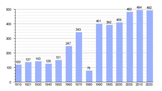 Población de los censos y conteos del Instituto Nacional de Estadística y Geografía (INEGI) de 1910 a 2010.[7] |