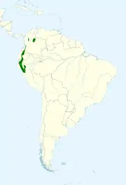Se encuentra en bosques y terrenos boscosos en la región andina del norte del Perú, a través de Ecuador y Colombia, al extremo occidental de Venezuela. Es común en general, y por lo tanto se consideran de preocupación menor por la BirdLife International. Una nueva subespecie, la A. l. yariguierum, fue descrita en 2006 en Serranía de los Yariguíes en Colombia.