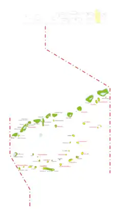| 1Islas habitadas:Bileffahi Feevah Feydhoo Firunbaidhoo Foakaidhoo Funadhoo Goidhoo Kanditheemu Komandoo Lhaimagu Maakandoodhoo Maaungoodhoo Maroshi Milandhoo Narudhoo Noomaraa