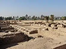 Es la única ciudad del antiguo Egipto que conserva grandes detalles de su plan interno, en gran parte porque la ciudad fue abandonada después de la muerte de Akenatón, cuando el hijo del faraón, el rey Tutankamón, decidió abandonar la ciudad y regresar a Tebas (el Luxor moderno).[88] La ciudad parece haber permanecido activa durante una década más o menos después de su muerte, y un santuario a Horemheb indica que estaba al menos parcialmente ocupada al comienzo de su reinado,[89] aunque solo fuera como una fuente de material de construcción en otros lugares. Una vez que fue abandonada, permaneció deshabitada hasta que el asentamiento romano comenzó a lo largo del borde del Nilo.[90] Sin embargo, debido a las circunstancias únicas de su creación y abandono, es cuestionable cuán representativo de las antiguas ciudades egipcias es en realidad.[91] Amarna fue construida apresuradamente y cubrió un área de aproximadamente 8 millas (13 km) de territorio en la orilla este del río Nilo, se reservaron tierras para proporcionar cultivos a la población de la ciudad. La ciudad entera estaba rodeada por un total de 14 estelas fronterizas que detallaban las condiciones de Akenatón para el establecimiento de esta nueva ciudad capital de Egipto.[92]