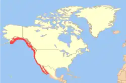 Se encuentra en el Océano Pacífico oriental: desde Alaska hasta la Baja California (México) y el Golfo de California.