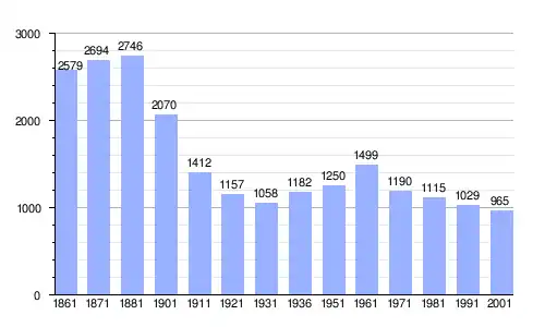 | Gráfica de evolución demográfica de Atrani entre 1861 y 2001 |
