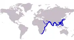 Se encuentra en las costas del Océano Índico y al oeste del Pacífico.