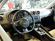 El manejo del control del climatizador está alojado en las tres ventilas redondas centrales. Con el control automático del clima se representan los varios modos y temperaturas en las pequeñas pantallas de las ventilas de aire. El TT dispone asimismo de asientos deportivos integrados con reposacabezas o de manera opcional con asientos deportivos S con ajuste neumático en los laterales de los asientos. El maletero del cupé se agrandó 13 litros hasta los 305 litros, los asientos traseros se pliegan de manera conjunta.