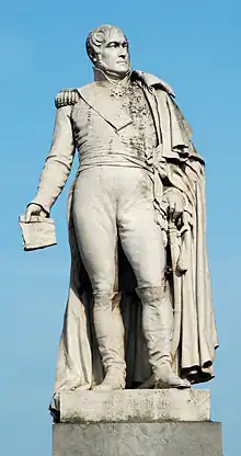 Tras la caída de Napoleón, Luis XVIII lo nombró par de Francia, pero durante los Cien Días vuelve a unirse a Napoleón. Tras la batalla de Waterloo fue arrestado, despojado de sus títulos y apartado de la lista de pares de Francia. Después de varios meses de cautiverio, fue puesto en libertad y se dedicó a la vida privada, de la que no salió hasta el 5 de marzo de 1819, cuando el gobierno lo llamó a la Cámara de los Pares.