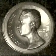 ![]() Su retrato en su nicho del Cementerio El Salvador de Rosario (Argentina) por el escultor Erminio Blotta | ||