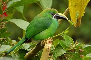 2. «Tucanete gorjiblanco Aulacorhynchus albivitta (Boissonneau, 1840)». en Avibase. Consultado el 13 de diciembre de 2018.