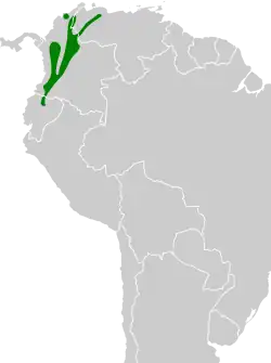 Se distribuye en los Andes, desde el oeste de Venezuela, a través de Colombia, hasta el norte de Ecuador.