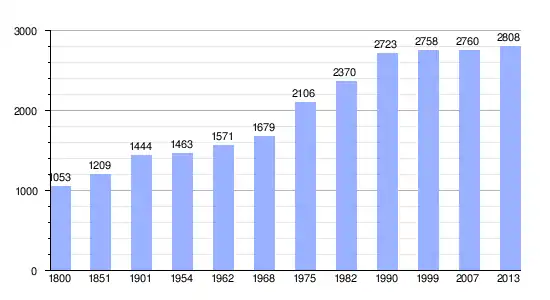 | Gráfica de evolución demográfica de Auneuil (comuna delegada) entre 1800 y 2013 |