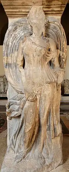 La velificatio, una prenda de vestir ondulante que forma un arco suspendido, es el atributo principal por el cual un aura puede ser identificada en el arte. Un par de velificantes (figuras enmarcadas por una velificatio) que aparecen en el Altar de la Paz de Augusto han sido identificadas a veces como auras.[5] Plinio describe estatuas de Auras velificantes sua veste, "haciendo una vela con su prenda", en el Pórtico de Octavia en Roma.[6] Las auras puede parecerse a las nereidas, de las que se distinguen principalmente por la ausencia de imágenes marinas.[7]