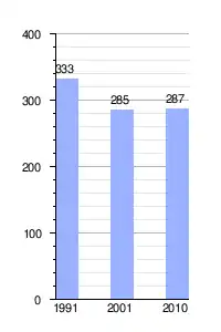 | Gráfica de evolución demográfica de Aurelia entre 1991 y 2010 |