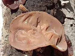 ![]() Auricularia americana sobre madera de conífera. | ||