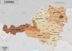 ![]() División administrativa del Distrito Imperial de la Marca Oriental (Austria) en 1941. | |||||||||||||||||||||||||||||||