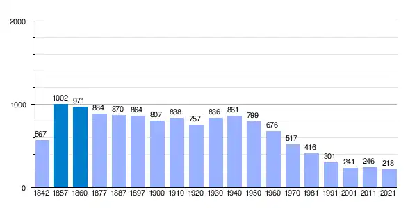 | Gráfica de evolución demográfica de Autilla del Pino[4] entre 1842 y 2021 |