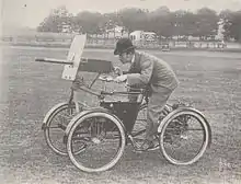 El Motor Scout fue diseñado y construido en 1898 por el inventor británico Frederick Richard Simms. Fue el primer vehículo armado propulsado por un motor de gasolina que se construyó. El vehículo era un cuatriciclo De Dion-Bouton que llevaba una ametralladora Maxim montada delante del manillar. Un escudo de hierro frente a la ametralladora protegía al conductor.[7]