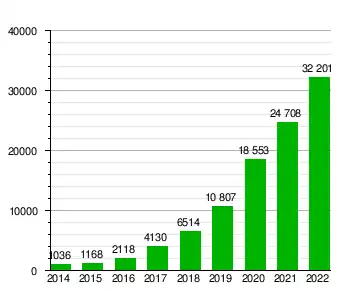 En el año 2022 se vendieron 36.452 coches eléctricos, lo que representó un 31% más que el año anterior.[6] En el año 2023 se matricularon más de 75.000 vehículos 100% eléctricos.