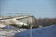 Este puente, que cruza el canal de navegación, la presa de Beauharnois y la vía marítima de San Lorenzo, mide 2,5 km. de longitud y está constituido por dos tableros, uno por calzada, de unos 14 metros de anchura y tres carriles de circulación cada uno. De su trazado, 1.500 metros fluyen sobre el agua y el resto lo hacen sobre tierra.