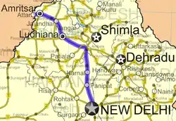 El día de hoy, la NH1 pasa a través de Amritsar, Jalandhar, Ludhiana, Rajpura, Ambala, Kurukshetra, Karnal, Panipat, Sonipat y Delhi. Se recorre una distancia de 456 km. El autobús Delhi-Lahore realiza su servicio por esta autopista.