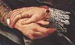 Además, Rubens se representa a sí mismo como un caballero aristocrático con su mano izquierda sobre la empuñadura de su espada.[1]
