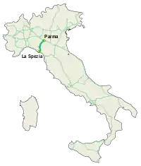 La autopista tiene su origen en la Autostrada A1, cerca de Parma. Después de la salida de Parma Ovest, el trazado se introduce en el valle del Taro, con las salidas de Fornovo di Taro, Borgotaro y Berceto, todas situadas en territorio emiliano. Después del túnel del paso de la Cisa, la autopista continúa en territorio toscano, donde se encuentran las salidas de Pontremoli y Aulla. Por fin, el recorrido hace su entrada en Liguria, donde, después de un breve tramo, se sitúa el enlace con la Autostrada A12 cerca del llano de Santo Stefano di Magra, a pocos kilómetros de La Spezia.