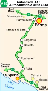 La Autostrada A15 (102 km) es una autopista italiana que conecta Parma con La Spezia, atravesando el valle del Taro y la región histórica de la Lunigiana. También se la denomina Autostrada della Cisa, puesto que atraviesa los Apeninos tosco-emilianos cerca del Paso de la Cisa. Permite conectar cómodamente la Autostrada del Sole con la Autostrada A12 (Génova-Livorno), favoreciendo la comunicación directa entre la llanura padana, la Riviera italiana y la Versilia.