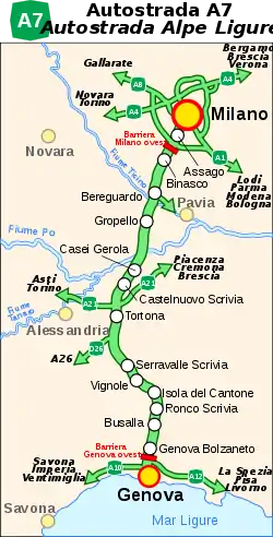 La Autostrada A7 (conocida también como Autostrada Serravalle) es una autopista italiana que conecta Génova con Milán.