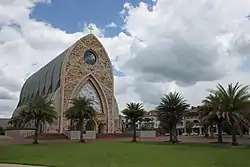 La ciudad fue planeada con la gran iglesia Ave María en el centro, cuyo fachada muestra la escultura del escultor Márton Váró[12] de 9 metros de altura de la Anunciación, que representa al Arcángel Gabriel saludando a la Virgen María con las palabras "Ave María".[13][14] La escultura "Buen Pastor" de Váró también se presenta dentro del Oratorio, también tallada en mármol de la Cueva Michelangelo en Carrara, Italia.[15]