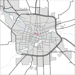 ![]() Vista hacia el oeste. De fondo se puede ver la construcción del edificio más alto de la ciudad: Torres Capitalinas. | ||