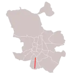 Es la prolongación de la avenida de Córdoba. Comienza en la glorieta de Málaga, junto al Hospital 12 de Octubre. Desde ahí sigue completamente recta hacia el sur, separando San Fermín de Orcasur, dos barrios del distrito de Usera.