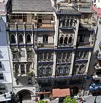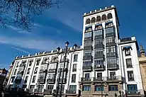 En el acera contraria destacan el edificio de José Espiau, levantado entre 1927 y 1929, como fachada del viejo colegio de San Miguel, frente a la catedral, también sobresale el edificio de Correos y Telégrafos, levantado entre 1927 y 1930 obra de los arquitectos Joaquín Otamendi y Luis Lozano y en la continuación, el edificio de la Aurora, realizado entre 1933 y 1936 por Antonio Llanes.