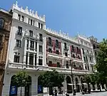 A la derecha de la avenida, en el ensanche denominado calle Adolfo Rodríguez Jurado, en el cruce con Santo Tomás, se encuentra una buena representación de la arquitectura moderna en el edificio de viviendas realizado en 1935-36 por el arquitecto José Galnares Sagastizabal para el conde de Ybarra, de estilo asociado a la arquitectura del Movimiento Moderno racionalista y que está inscrito en el Catálogo General del Patrimonio Histërico Andaluz, con carácter genàrico colectivo.[11] A continuación se encuentra el antiguo Teatro Coliseo España, actual sede de la Delegación de Economía y Hacienda de la Junta de Andalucía, proyecto de los arquitectos José y Aurelio Gómez Millán del año 1925.