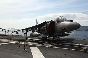 cirse del nuevo F-35B Lightning II, que demostró su capacidad VTOL en los vuelos de prueba pero que será utilizado como avión STOVL.[5]