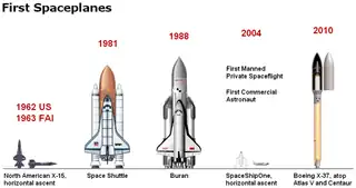 Los cinco se consideran planeadores de cohetes. Dos de estos cinco (X-15 y SpaceShipOne) son aviones propulsados por cohetes que han sido transportados a una altitud de varias decenas de miles de pies por una nave nodriza atmosférica antes de ser lanzados, y luego vuelan más allá de la línea Kármán, el límite de la atmósfera de la Tierra, bajo su propio poder. Tres de ellos (Transbordador espacial, Burán y X-37) son vehículos de aterrizaje horizontal y despegue vertical (VTHL) que dependen del empuje de cohetes para que la fase de ascenso alcance el espacio y la elevación atmosférica para la reentrada, el descenso y el aterrizaje. Las tres aeronaves espaciales VTHL volaron mucho más lejos que las aeronaves lanzadas, no solo saliendo de la atmósfera terrestre, sino también entrando en órbita alrededor de ella, lo que requiere al menos 50 veces más energía en el ascenso y una fuerte protección térmica para el viaje de regreso. De los cinco vehículos, tres han sido pilotados por astronautas, volando el Burán y el X-37 en misiones no tripuladas.