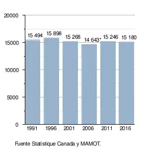b. Statistique Canada, Profils des communautés de 2001 : Avignon, Ottawa. 01/02/07. Consultado el 19 de febrero de 2016. (en francés)