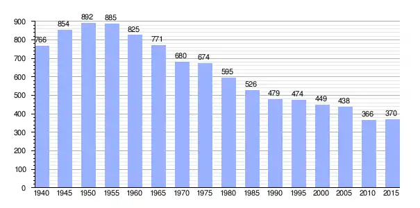 | Gráfica de evolución demográfica de Awashimaura entre 1940 y 2015 |
