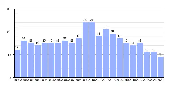 | Gráfica de evolución demográfica de Axilda entre 1999 y 2022 |