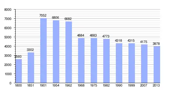 | Gráfica de evolución demográfica de Ay entre 1800 y 2013 |