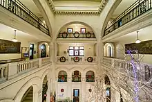 Los "arquitectos de la ciudad" fueron Ogden y Gander, quienes diseñaron las alteraciones en 1916 que posteriormente se completaron en 1918.[16] La oficina del alcalde está en el primer piso de la torre, la cámara del Consejo y las oficinas están en el segundo piso del edificio y la oficina del secretario de la ciudad está en el segundo piso de la torre. La oficina del alcalde contiene una pintura del primer alcalde de la ciudad, Pieter Schuyler.[16]