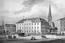 Con la mediatización y secularización del Imperio Romano Germánico en 1803, la ciudad libre de Bremen ganó el palacio del arzobispo, que hasta entonces era extra-territorial. Se utilizaba como oficina y entre 1819 y 1908 transformó a un edificio modesto más noble de clasicismo suave. Este Stadthaus, situado junto al ayuntamiento, sirvió para funciones adicionales de la administración de la ciudad y por las primeras décadas también contenía dos oficios de correos, el de los correos Bremenses y el de los correos de Prusia.