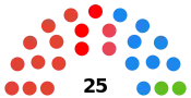 Hay dos tipos de Órganos de Gobierno, los necesarios y los complementarios. Los primeros son el Alcalde, los Tenientes de Alcalde, el Pleno y la Junta de Gobierno Local. El pleno municipal es el órgano de máxima representación política de la ciudadanía en el gobierno municipal, apareciendo configurado como órgano de debate y de adopción de las grandes decisiones estratégicas a través de la aprobación de los reglamentos de naturaleza orgánica y otras normas generales, de los presupuestos municipales, de los planes de ordenación urbanística, de las formas de gestión de los servicios y también de control y fiscalización de los órganos de gobierno. El Pleno se compone de 25 ediles donde el alcalde es quien lo preside, aunque puede delegar esta presidencia.