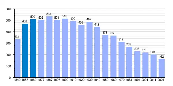 | Gráfica de evolución demográfica de Azara[8] entre 1842 y 2021 |