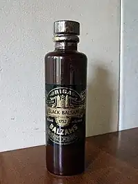 El Bálsamo Negro también se ha usado en medicina tradicional. Se considera un buen remedio contra el resfriado y se usa para tratar problemas digestivos.[3] Se lleva fabricando en Riga desde mediados del siglo XVIII. Según la leyenda, la emperatriz Catalina la Grande de Rusia enfermó durante una visita a Letonia, pero resultó curada tras beber Bálsamo Negro de Riga.[4]