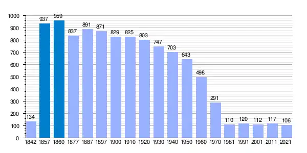 | Gráfica de evolución demográfica de Bárcabo[8] entre 1842 y 2021 |