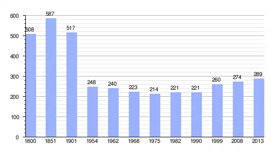 Los datos demográficos contemplados en este gráfico de la comuna de Bénévent-et-Charbillac[5] se han cogido de 1800 a 1999 de la página francesa EHESS/Cassini, y los demás datos de la página del INSEE.[6]