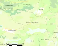 Bézaudun-les-Alpes es una población y comuna francesa, situada en la región de Provenza-Alpes-Costa Azul, departamento de Alpes Marítimos, en el distrito de Grasse y cantón de Coursegoules.