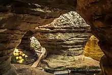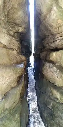 - Una ruta turística de varios cientos de metros de longitud discurre entre diversas formaciones rocosas como mazas, setas o pilares.[1] Algunas de las rocas tienen sus propios nombres, como Stołowy Głaz, Tunel, Kuchnia o Kurza Stopka.[1] En los lugares más estrechos, los turistas tienen que meterse por grietas en la roca de varias decenas de centímetros.[1]