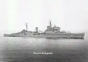 En la Armada Peruana fue asignado el 9 de febrero de 1960 y llegó a su nueva base de operaciones en El Callao el 19 de marzo de aquel año, la armada peruana lo bautizó como BAP Coronel Bolognesi (CL-82) en honor al coronel del EP Francisco Bolognesi Cervantes, Gran Mariscal del Perú, último jefe peruano de la plaza de Arica, que luchó en la guerra del guano y del salitre, fue el segundo buque peruano en llamarse así.